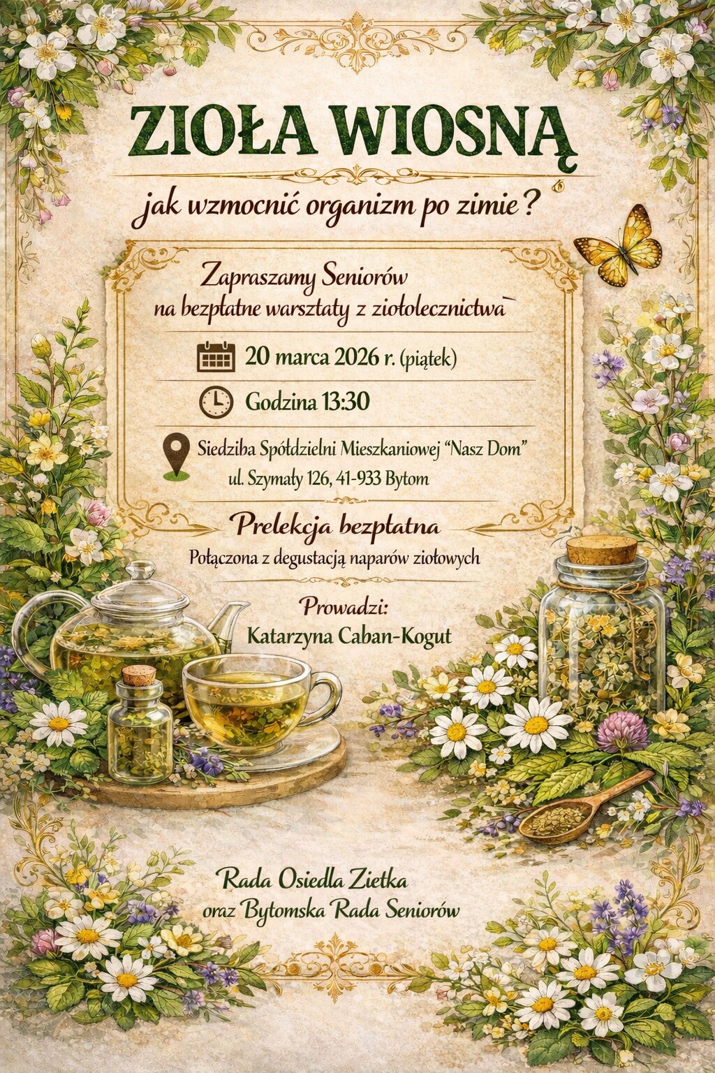 Rada Osiedla Ziętka wraz z Bytomską Radą Seniorów serdecznie zaprasza na bezpłatne warsztaty poświęcone wykorzystaniu ziół w codziennej profilaktyce zdrowotnej.